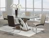 The table showcases a tempered glass tabletop, supported by eye-catching curved double pedestals in popular contrasting colours. The chairs are expertly upholstered in rich leatherette wrapping the contoured seats and chair backs in an effort to express comfort and modern beauty in one breath. Once it's all together, you get a stunning dining set built with enduring quality and long-lasting comfort in mind.